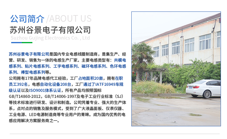 蘇州谷景電子有限公司,一家從事電感、濾波器、變壓器等產(chǎn)品的專業(yè)制造商。公司本著“誠實(shí)、敬業(yè)、創(chuàng)新、奉獻(xiàn)”的經(jīng)營理念,在“品質(zhì)優(yōu)先,勇于創(chuàng)新”的企業(yè)宗旨指導(dǎo)下,立志成為國內(nèi)好的電感應(yīng)用解決方案服務(wù)商之一。 詳情請咨詢0512-89162980